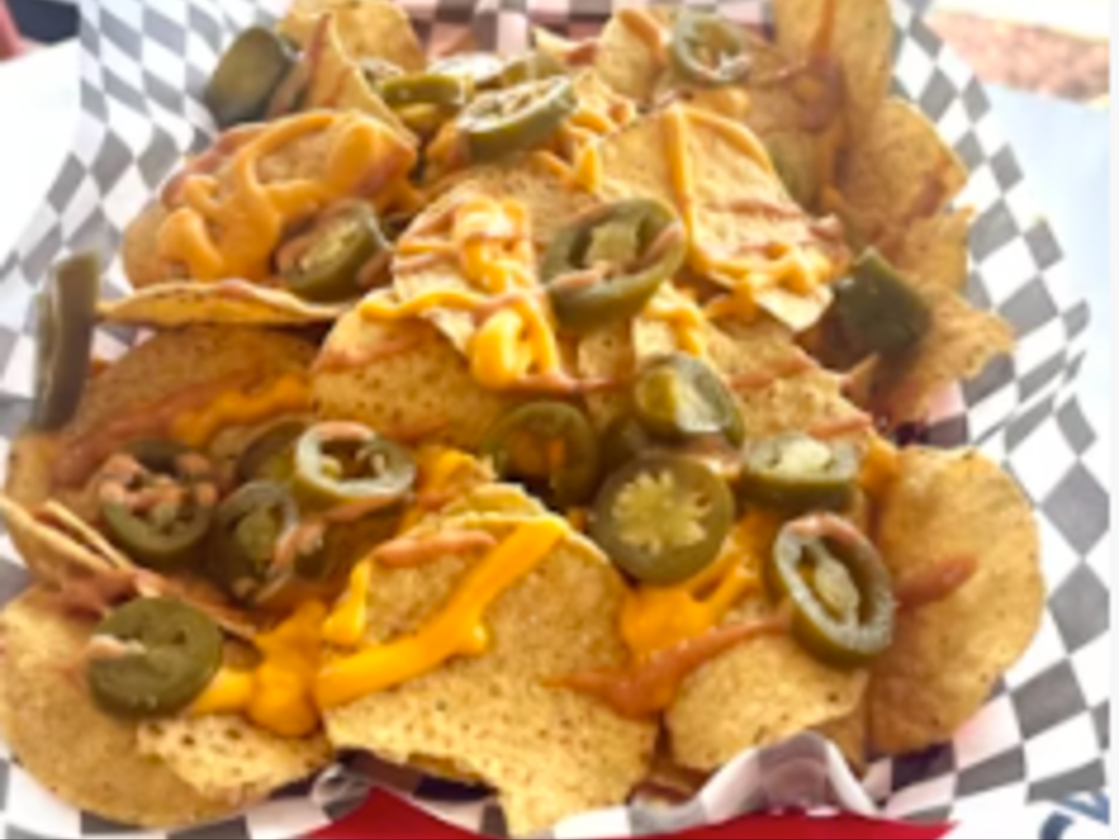 Crispy chips topped with nacho cheese, spicy Kluckin sauce, and jalapeños for a zesty kick